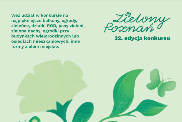 Szanowni Mieszkańcy! Zaczynamy 32. edycję konkursu „Zielony Poznań”. Uczestnicy mogą zgłaszać obiekty w następujących kategoriach: a. zieleńce, kwietniki osiedlowe, zakładowe, szkolne; b. balkony, tarasy, loggie i okna; c. ogrody przydomowe; d. ogródki przy budynkach wielorodzinnych lub osiedlach mieszkaniowych (w tym: spółdzielni, wspólnot mieszkaniowych czy budynków komunalnych) e. działki na terenach rodzinnych ogrodów działkowych lub stowarzyszeń […]