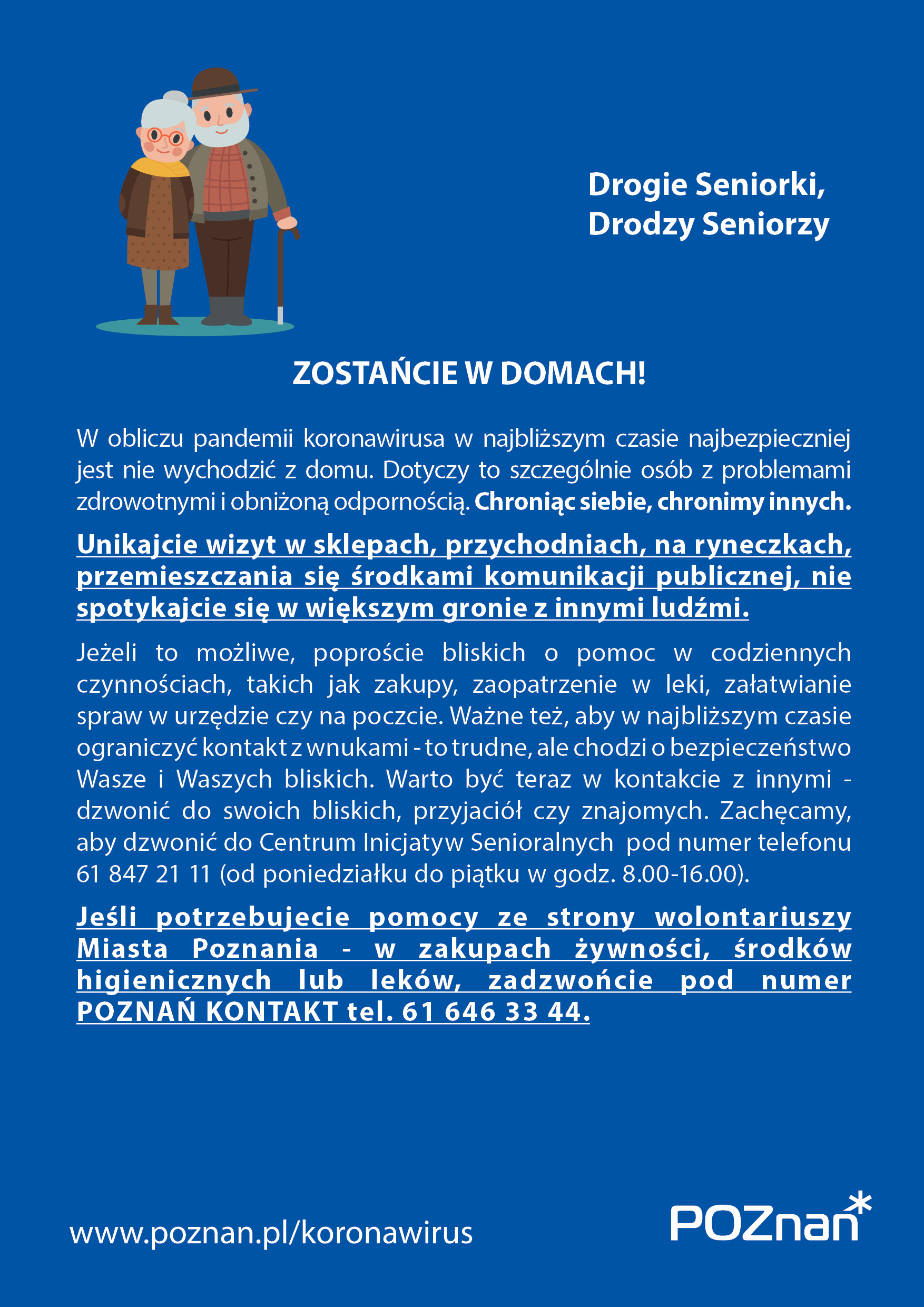 Apelujemy do wszystkich seniorów o pozostanie w domach i nie wychodzenie. plakat