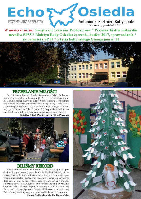Mamy gazetę – bezpłatny informator- nie tylko o naszych działaniach! Wespół z placówkami oświatowymi ,zamierzamy was Drodzy mieszkańcy informować o tym ,co dzieje się na Osiedlu A-Z-K ….! oto gazetka w wersji pdf do pobrania: echo-osiedla