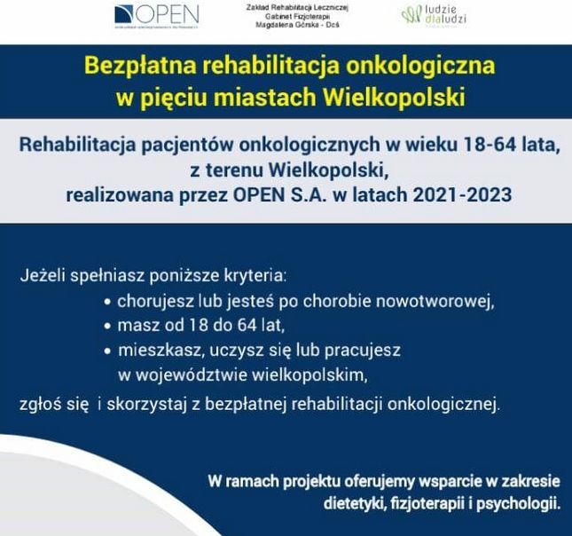 Szanowni Mieszkancy AZK ! Uprzejmie informujemy, że Ośrodek Profilaktyki i Epidemiologii Nowotworów w Poznaniu realizuje na terenie województwa wielkopolskiego projekt pod nazwą „Rehabilitacja pacjentów onkologicznych w wieku 18-64 lata, z terenu Wielkopolski, realizowana przez OPEN S.A. w latach 2021-2023”. Autorem programu zdrowotnego jest Urząd Marszałkowski Województwa Wielkopolskiego. Projekt jest współfinansowany ze środków Unii Europejskiej i […]